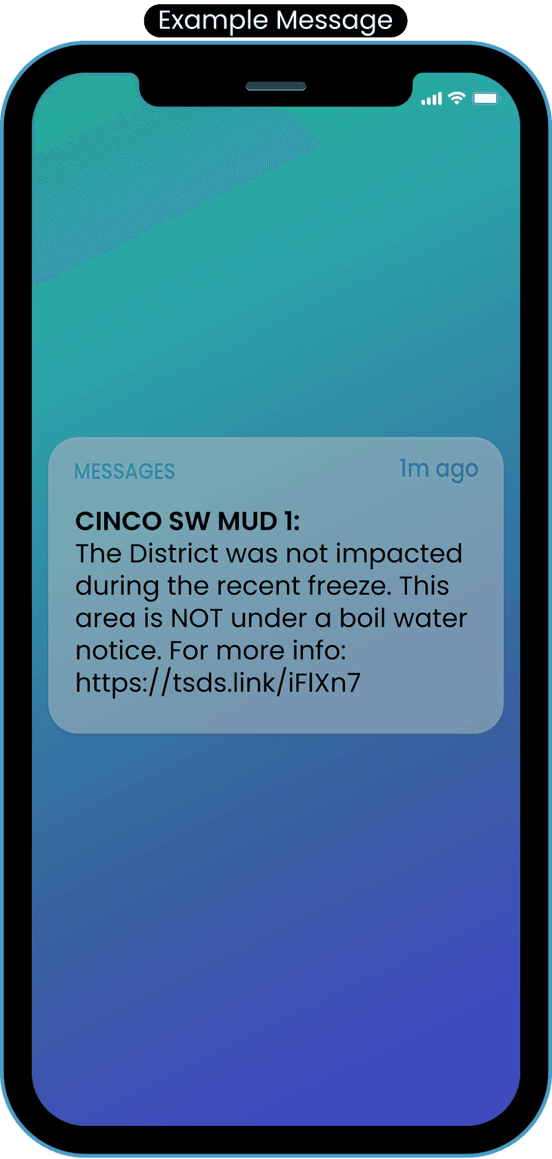 Residents registered for this free service will receive text and/or email notification explaining the basics of the situation with a short link to the news post on the District website with more complete details.